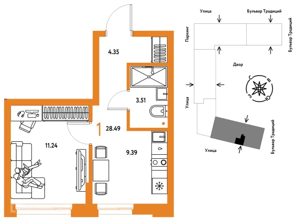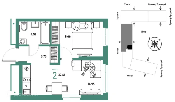 1 комн. квартира в Тюмени в ипотеку от 37 100 руб/месяц