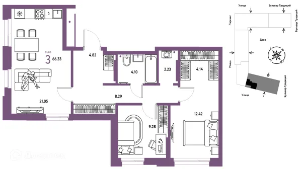 3 комн. квартира в Тюмени в ипотеку от 65 043 руб/месяц