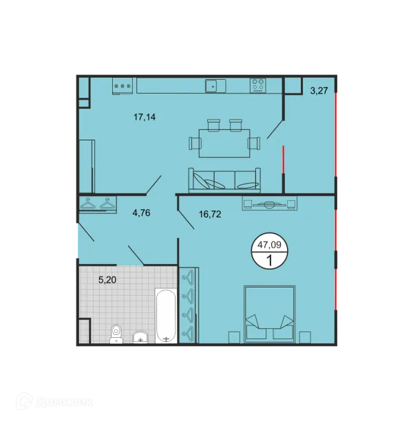 1 комн. квартира в Ставрополе в ипотеку от 32 892 руб/месяц