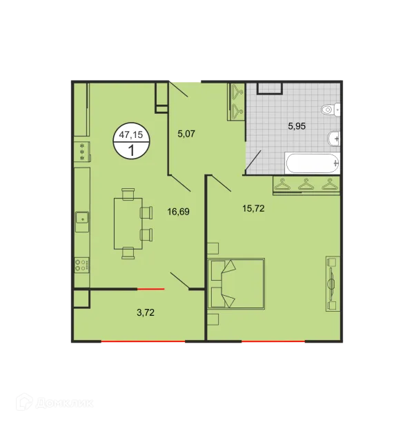 1 комн. квартира в Ставрополе в ипотеку от 35 415 руб/месяц