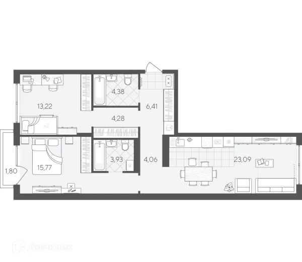 2 комн. квартира в Тюмени в ипотеку от 54 079 руб/месяц