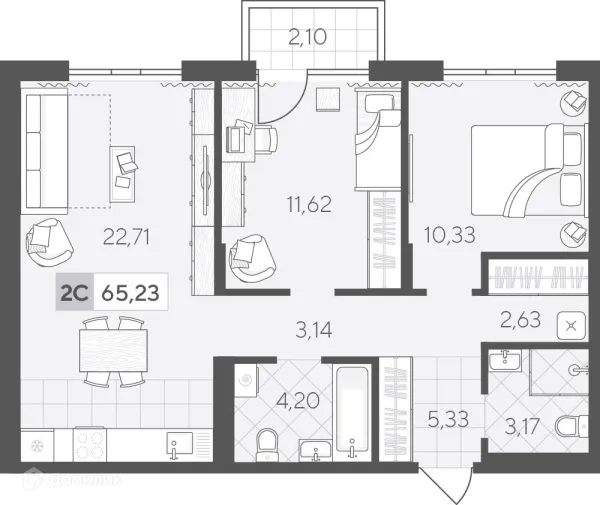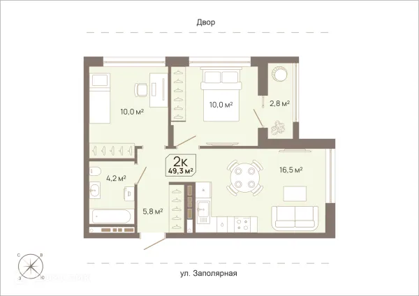2 комн. квартира в Тюмени в ипотеку от 56 042 руб/месяц