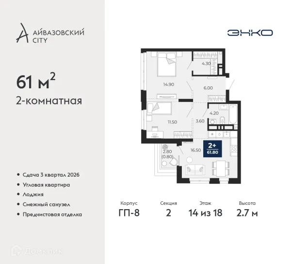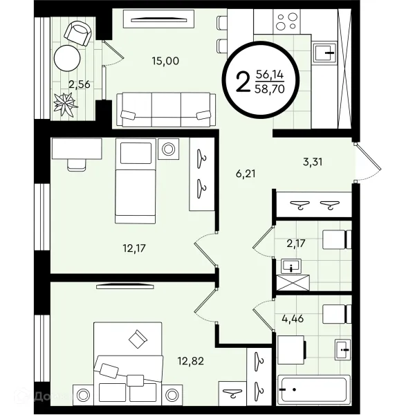 2 комн. квартира в Тюмени в ипотеку от 58 688 руб/месяц