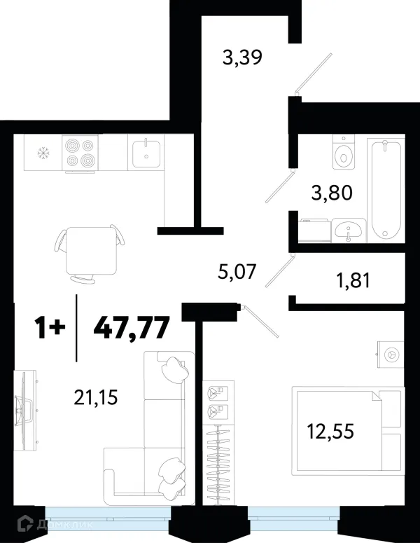 1 комн. квартира в Тюмени в ипотеку от 41 405 руб/месяц
