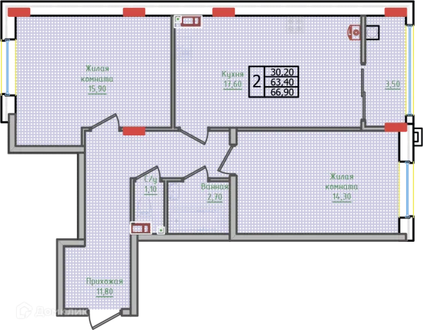 2 комн. квартира в Ставрополе в ипотеку от 56 394 руб/месяц
