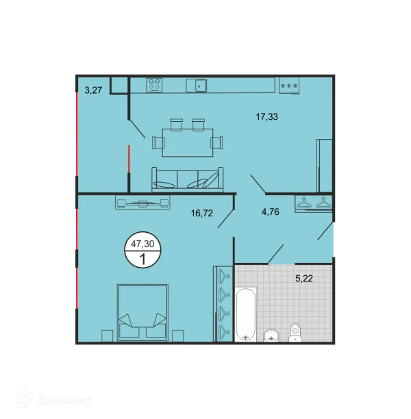 1 комн. квартира в Ставрополе в ипотеку от 30 733 руб/месяц