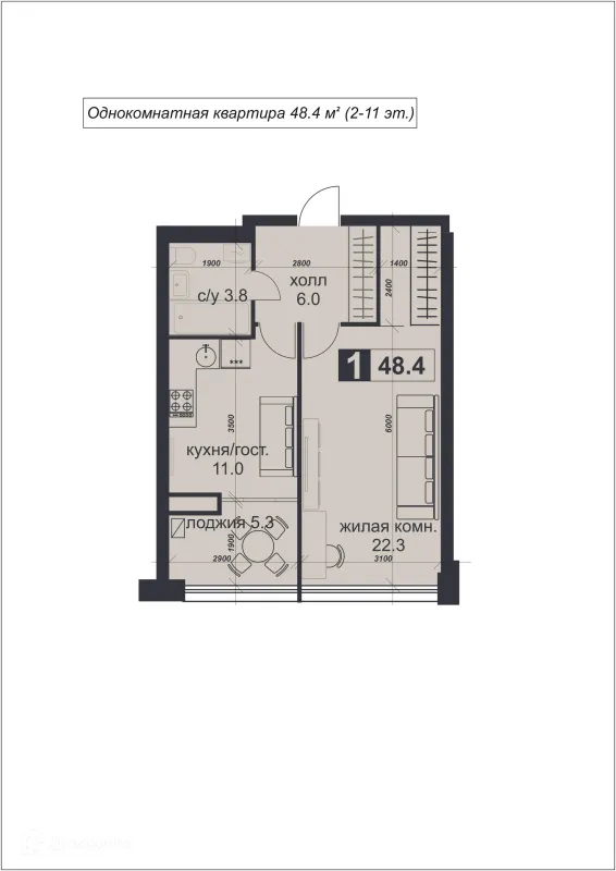 1 комн. квартира в Ставрополе в ипотеку от 33 988 руб/месяц