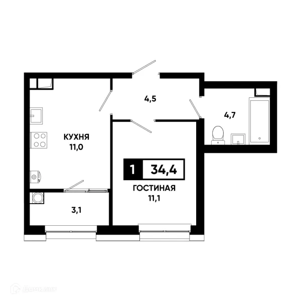 1 комн. квартира в Ставрополе в ипотеку от 29 989 руб/месяц