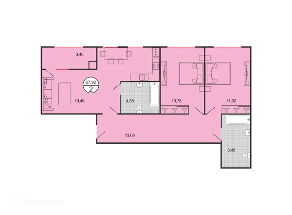2 комн. квартира в Ставрополе в ипотеку от 44 996 руб/месяц