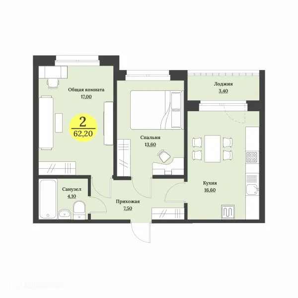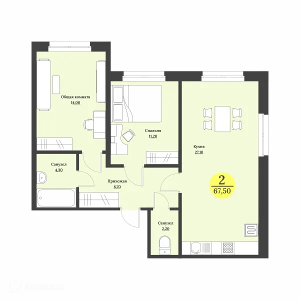 2 комн. квартира в Ставрополе в ипотеку от 56 233 руб/месяц