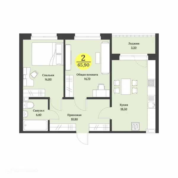 2 комн. квартира в Ставрополе в ипотеку от 46 002 руб/месяц