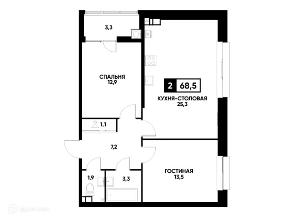 2 комн. квартира в Ставрополе в ипотеку от 63 368 руб/месяц