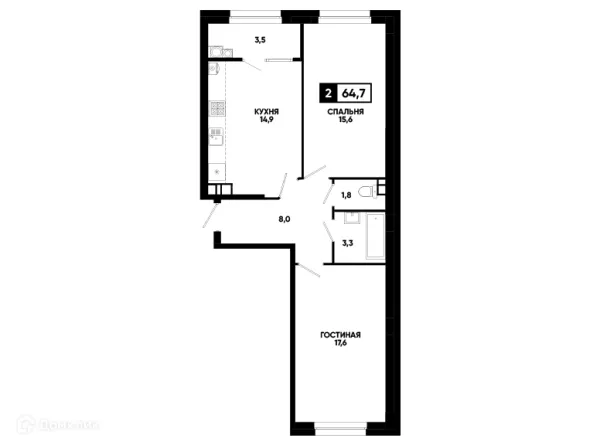 2 комн. квартира в Ставрополе в ипотеку от 64 809 руб/месяц