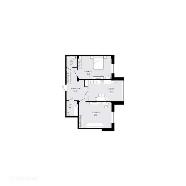 2 комн. квартира в Ставрополе в ипотеку от 65 025 руб/месяц