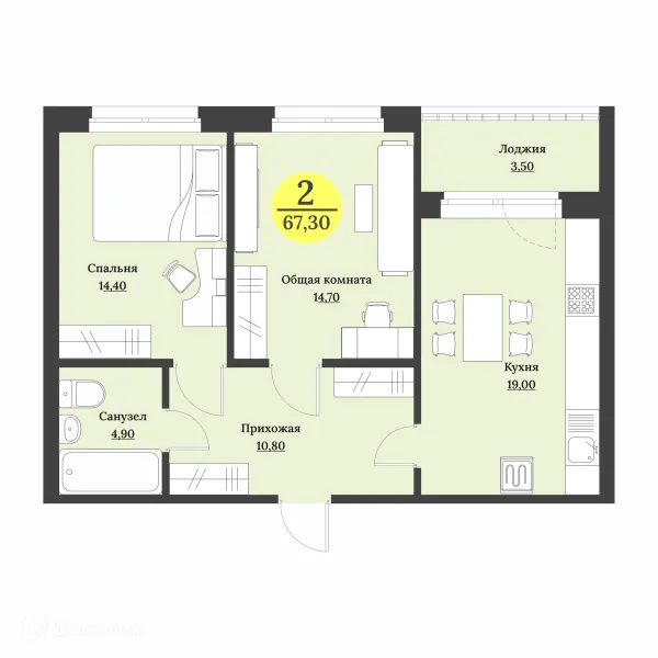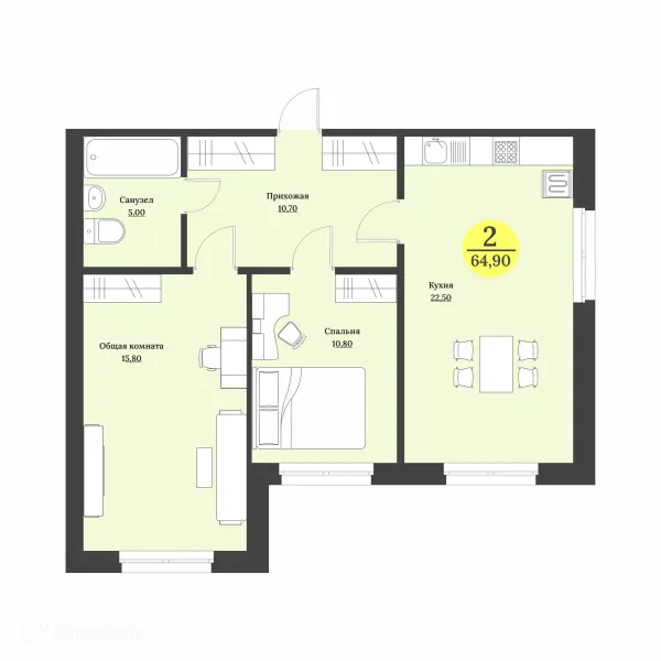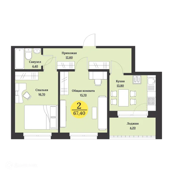 2 комн. квартира в Ставрополе в ипотеку от 46 836 руб/месяц