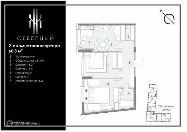 2 комн. квартира в Ставрополе в ипотеку от 44 329 руб/месяц