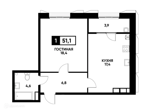 1 комн. квартира в Ставрополе в ипотеку от 36 954 руб/месяц