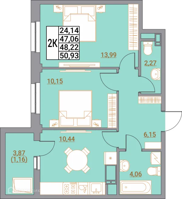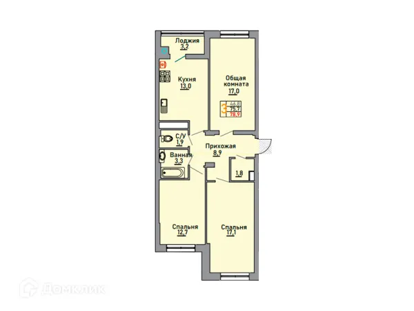 2 комн. квартира в Ставрополе в ипотеку от 43 130 руб/месяц