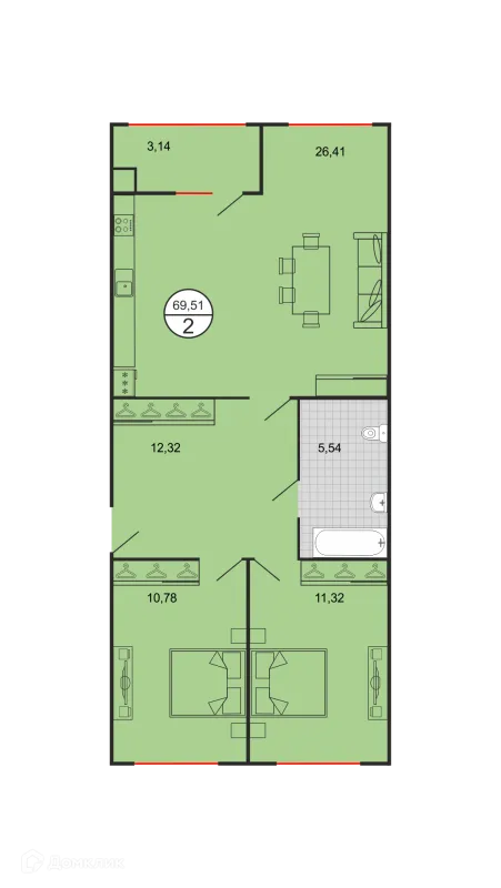 2 комн. квартира в Ставрополе в ипотеку от 46 049 руб/месяц