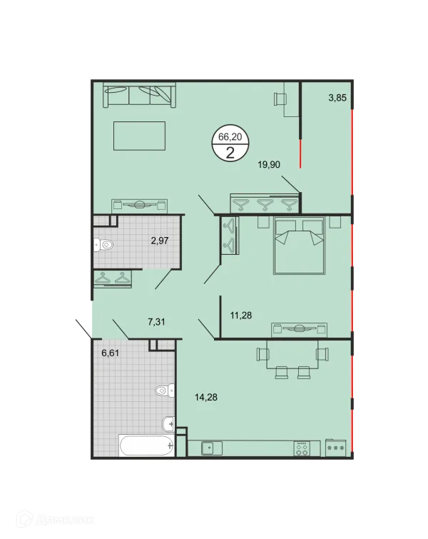 2 комн. квартира в Ставрополе в ипотеку от 43 857 руб/месяц