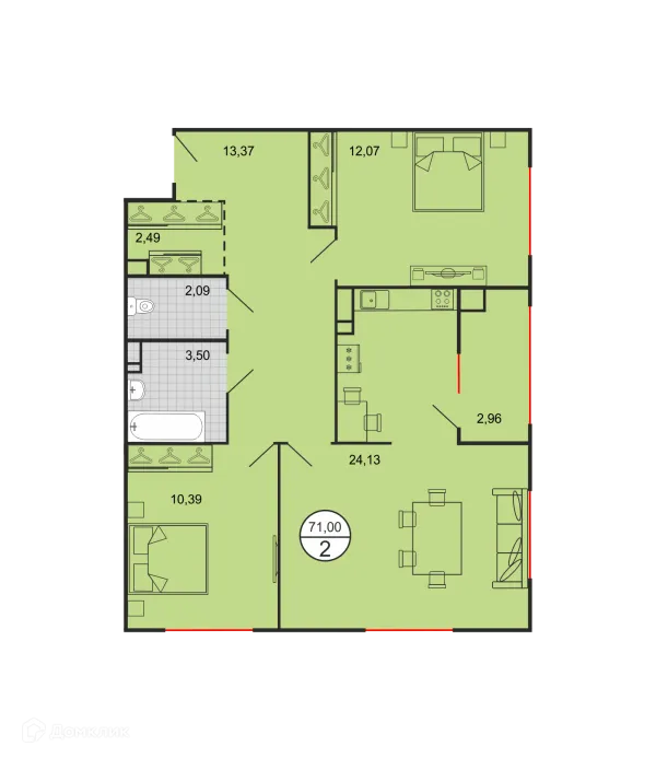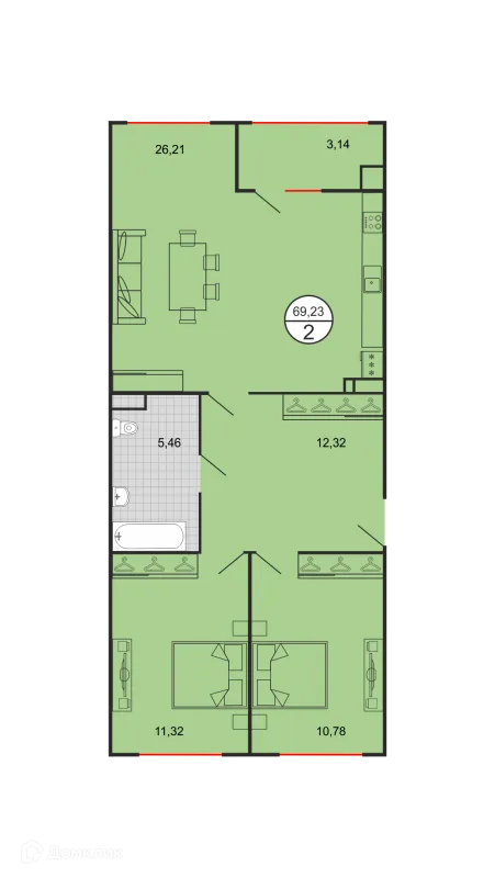 2 комн. квартира в Ставрополе в ипотеку от 44 867 руб/месяц