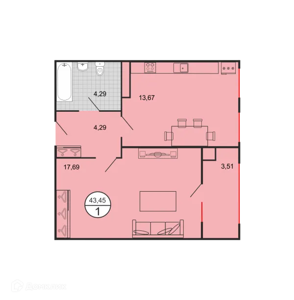 1 комн. квартира в Ставрополе в ипотеку от 32 780 руб/месяц