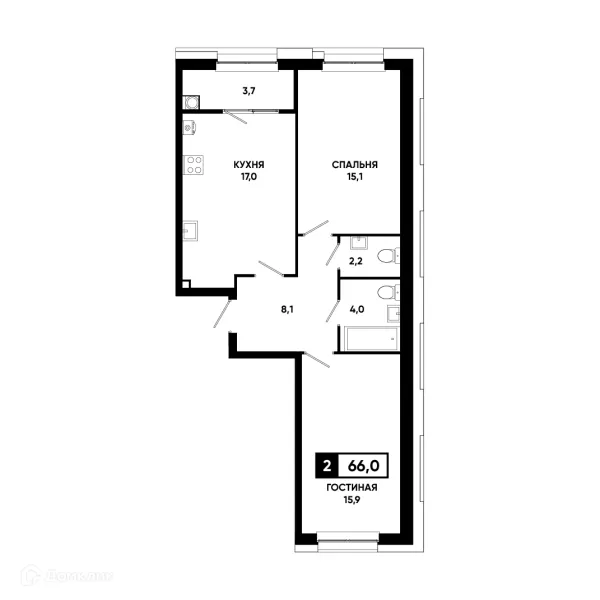 2 комн. квартира в Ставрополе в ипотеку от 66 249 руб/месяц