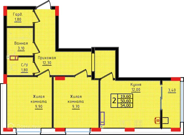 2 комн. квартира в Ставрополе в ипотеку от 45 891 руб/месяц