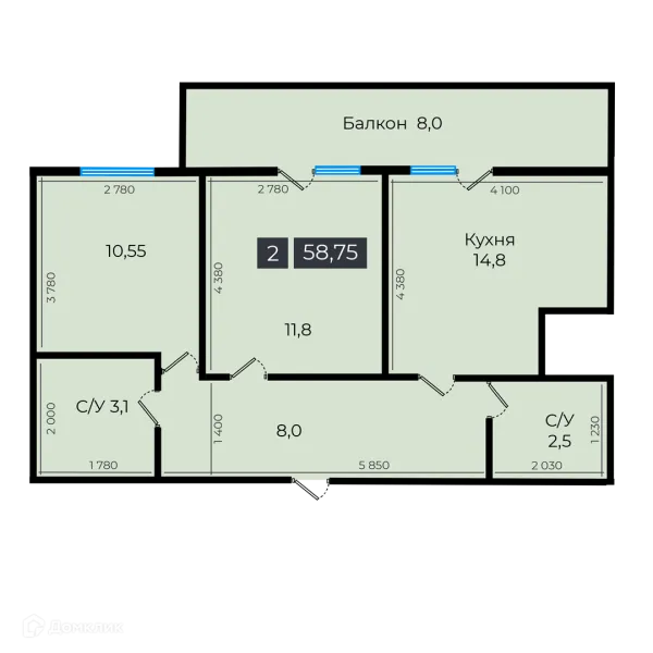 2 комн. квартира в Ставрополе в ипотеку от 35 155 руб/месяц