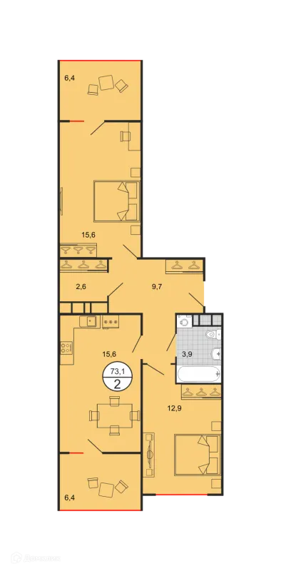 2 комн. квартира в Ставрополе в ипотеку от 51 570 руб/месяц