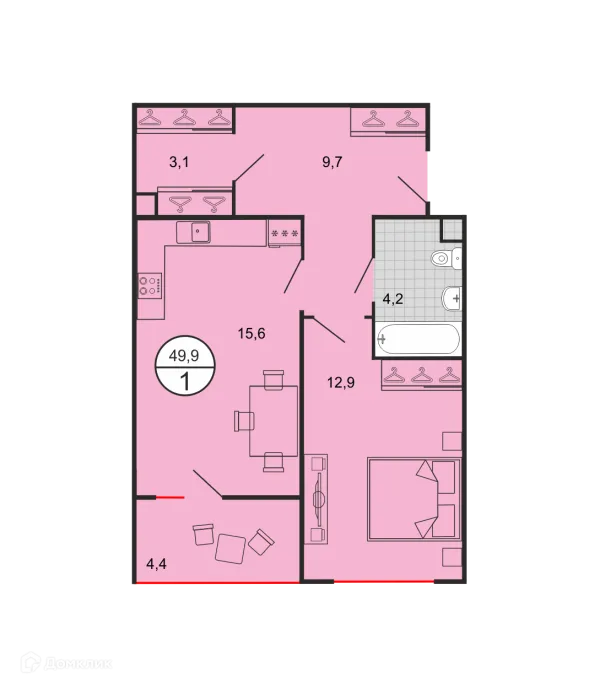 1 комн. квартира в Ставрополе в ипотеку от 42 572 руб/месяц